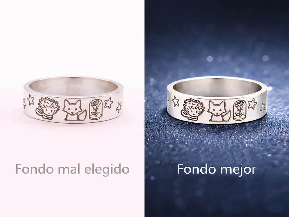 El fondo no es solo estética, es percepción de marca. Un fondo mal elegido puede hacer que una joya se vea común, mientras que uno bien trabajado eleva su valor y la posiciona como producto premium.